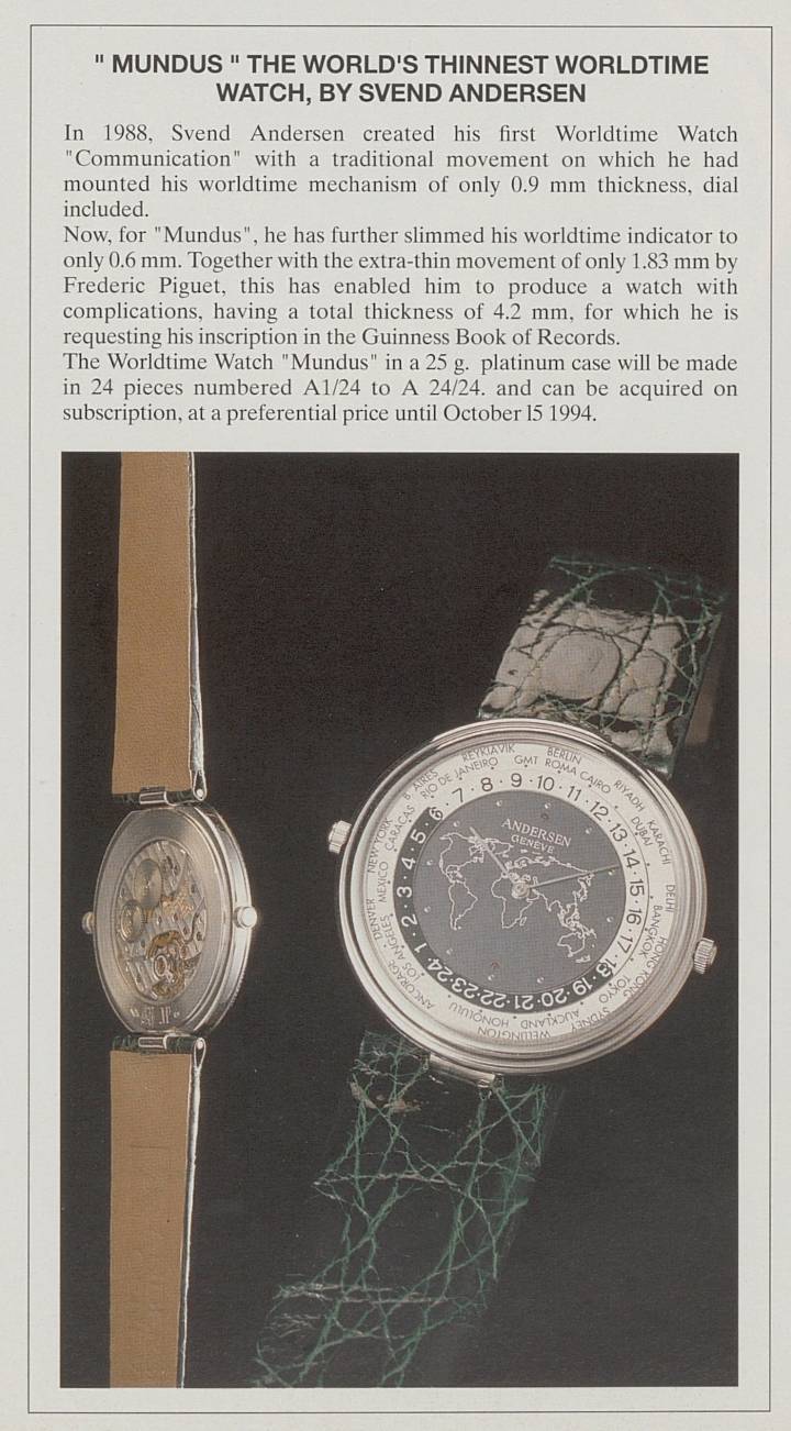 - En 1990, Andersen Genève presentó su primer modelo World Time, llamado “Communication” (columna derecha).