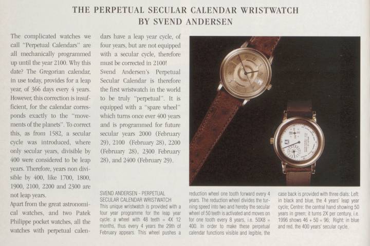 - El reloj de pulsera Perpetual Secular Calendar, una especialidad de Svend Andersen