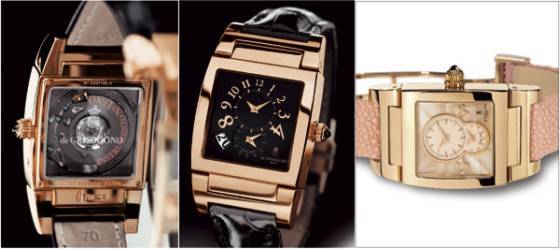 El Instrumento Grande tiene una apertura de fecha muy grande que se alberga en una nueva caja en forma de rectángulo en posición horizontal. Un concepto sencillo y sobrio, el reloj (39,7 x 48,3 mm.) va equipado con un movimiento automático básico ETA con la adición de un módulo exclusivo para la gran fecha. El Instrumento Grande está disponible en acero inoxidable o en oro rojo de 18 quilates con esfera plateada, blanco roto, negra o marrón con decoración guilloché, agujas dauphine con capa de Superluminova. Resistente al agua hasta los 30 metros, el reloj es una pieza maestra de discreta elegancia. La edición limitada del Occhio Ripetizione Minuti de de Grisogono otorga un estilo único a un viejo favorito: el repetidor de minutos. A diferencia de todo lo visto hasta ahora está diseñado bajo el concepto de la cámara reflex donde un mecanismo de diafragma de doce hojas se abre para mostrar el movimiento repetidor durante la duración del período de sonería, luego se cierra otra vez después de haber proporcionado una vista fugaz a esta maravilla de la mecánica. El movimiento es un Christophe Claret de cuerda manual movimiento Calibre Repetidor de Minutos con toque de campana catedral y un exclusivo montaje de diafragma auxiliar de de Grisogono. El repetidor de minutos y montaje de diafragma se componen de 414 partes y tiene las funciones de horas y minutos, toque repetidor de horas, cuartos y minutos en tres campanas. Con unas medidas de 43,6 x 56,4 mm. y un grosor de 14,1 mm, el Occhio Ripetizione Minuti, que está disponible en oro de 18 quilates rojo, blanco o negro es un poderoso recordatorio de la originalidad de la riqueza creativa de de Grisogono. La tercera colección del año es el Power Breaker, un original reloj deportivo inspirado en las carreras de Formula 1. El reloj (54,23 x 43,33 mm) viene en varias versiones: acero inoxidable Negro PVD acabado en acero o en oro de 18 quilates rosa, rojo o “marrón browny” (oro rosa tostado de acabado mate creado por Fawaz Gruosi para de Grisogono) y equipado con un calibre mecánico ETA de cuerda automática con un sub-montaje cronógrafo Dubois-Dépraz. El cronógrafo tiene un contador de 30 minutos y 12 horas con una aguja central de segundos y es estanco hasta los 30 metros.