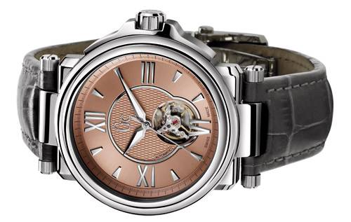Reloj de acero inoxidable cepillado y pulido de 44mm, equipado con un movimiento Suizo mecánico de remonte automático con decoración de graneado circular. Funciones de horas, minutos y segundos en el centro; 42 horas de reserva de marcha; esfera en tono cobre con decoración guilloché con acabado en rayo de sol; apertura a las 6 en punto haciendo visible el muelle del balancín; Cristales de zafiro frontal y trasero; resistente al agua hasta 100. Edición limitada a 250 piezas para todo el mundo.
