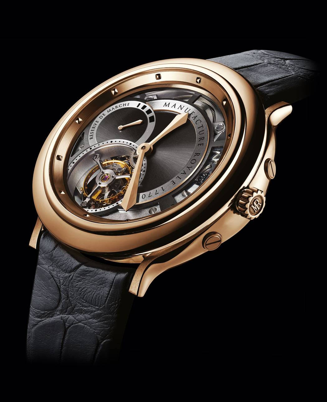 Este reloj, llamado 1770 por el año en que se estableció la Manufactura Royale, captura la esencia de la marca. Por un lado, tiene el brío creativo de un diseño atrevido y contemporáneo, directamente de la imaginación del renombrado diseñador Eric Giroud.