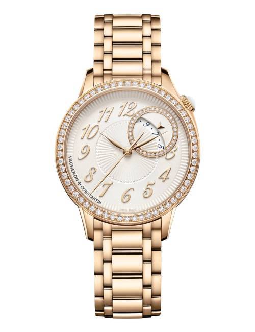 Inspirado en el período Art Deco, en el cual el abanico era un motivo favorecido, el Heures Créatives Heure Discrète de Vacheron Constantin juega con el contraste entre la ostentación extravagante de los diamantes y la función discreta del reloj. Tallado en filigrana de oro blanco y con incrustaciones de piedras preciosas que acentúan su distintiva geometría, el abanico se despliega para revelar una esfera blanca delicada en madreperla con lmas de fina textura, que se acciona mediante un diminuto movimiento mecánico de carga manual, el Calibre 10 55 de 15.70mm. Esta demostración de destreza relojera y diseño de joyería creativa es un digno marcador del 260º cumpleaños de la Maison Ginebrina.