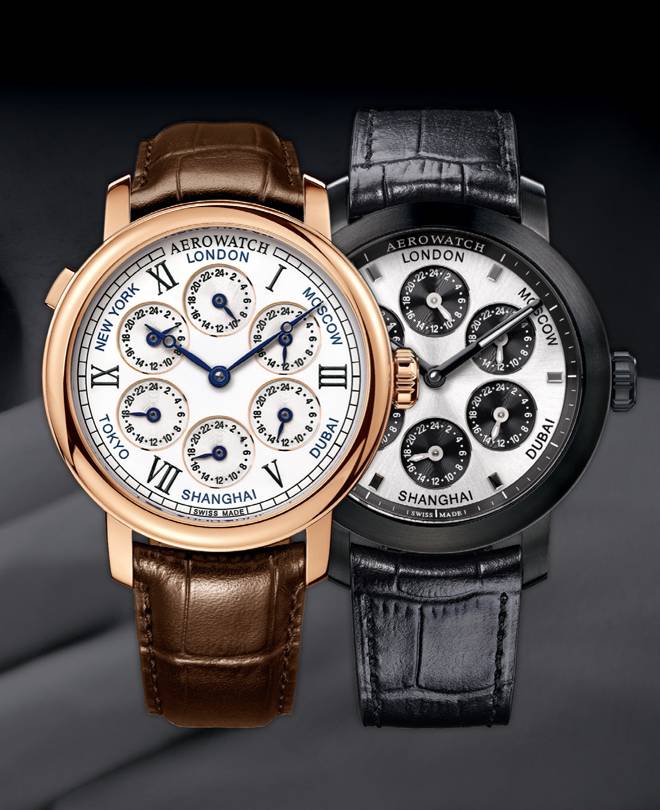 El lujoso acabado refleja la vanguardía artesana. Disponible en versión clásica o deportiva, este nuevo reloj ofrece una comodidad sin igual para los viajeros frecuentes, así como para las personas que se comunican a escala mundial. Con esta creación, Aerowatch definitivamente se ha reafirmado como un contendiente clave en la pequeña comunidad de empresas relojeras innovadoras e independientes en el Jura.