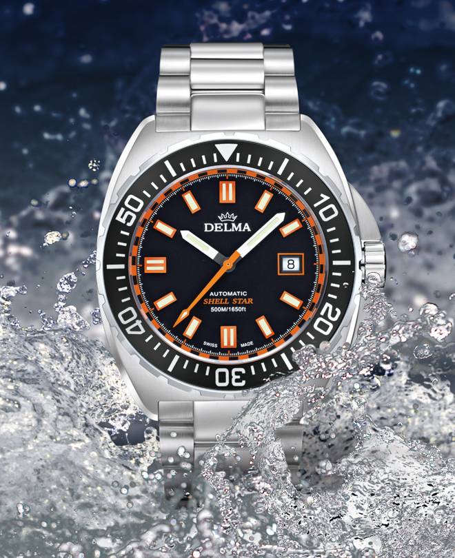El Delma Shell Star Automatic es un modelo icónico de Delma. Se introdujo por primera vez en 1975, un verdadero reloj de buceo con un bisel de giro unidireccional. La nueva edición de este reloj de acero intemporal es un compañero ideal para un largo viaje a través del Atlántico. Su movimiento automático garantiza la función en condiciones más duras ya que su única fuente de energía es la actividad de su portador. Al estar en movimiento casi 24 horas al día, no hay peligro de que el reloj del capitán pueda detenerse. Su reserva de marcha de 42 horas asegura que el reloj continuará trabajando incluso si se deja a un lado durante un descanso. Su bisel giratorio unidireccional con una indexación de minutos en un código de color claramente legible en aluminio anodizado es una gran ayuda para sincronizar acciones cortas como seguir un curso durante un tiempo determinado. El tamaño imponente del reloj de 44 mm le da el carácter de un instrumento y lo hace muy legible en condiciones adversas.