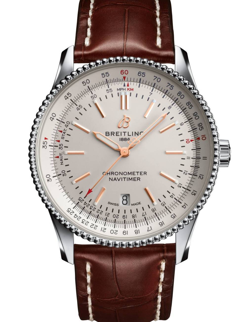 El Breitling Navitimer ha sido el reloj de piloto más prestigioso del mundo desde 1952. Ahora, el nuevo Navitimer 1 Automatic 41 combina el atractivo histórico de un verdadero ícono con el refinamiento de un reloj sofisticado y contemporáneo, y representa una sorprendente adición a la familia Navitimer.