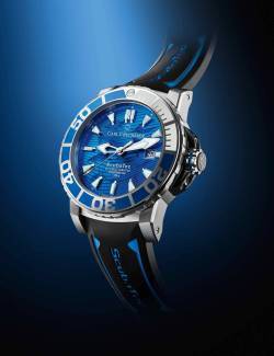 Un bisel giratorio unidireccional en oro blanco y cerámica, el amplio uso del recubrimiento Super-LumiNova y una válvula de liberación de helio que flanquean la caja son las numerosas características de seguridad que hacen de esta edición especial del Patravi ScubaTec un verdadero instrumento de buceo.