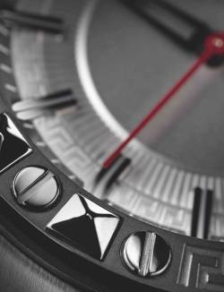 Rematando la caja, el bisel está enriquecido con tres tornillos, la Greca y un patrón de rayas y elementos piramidales que también aparecen en la banda de acero inoxidable de la versión más urbana de este modelo.