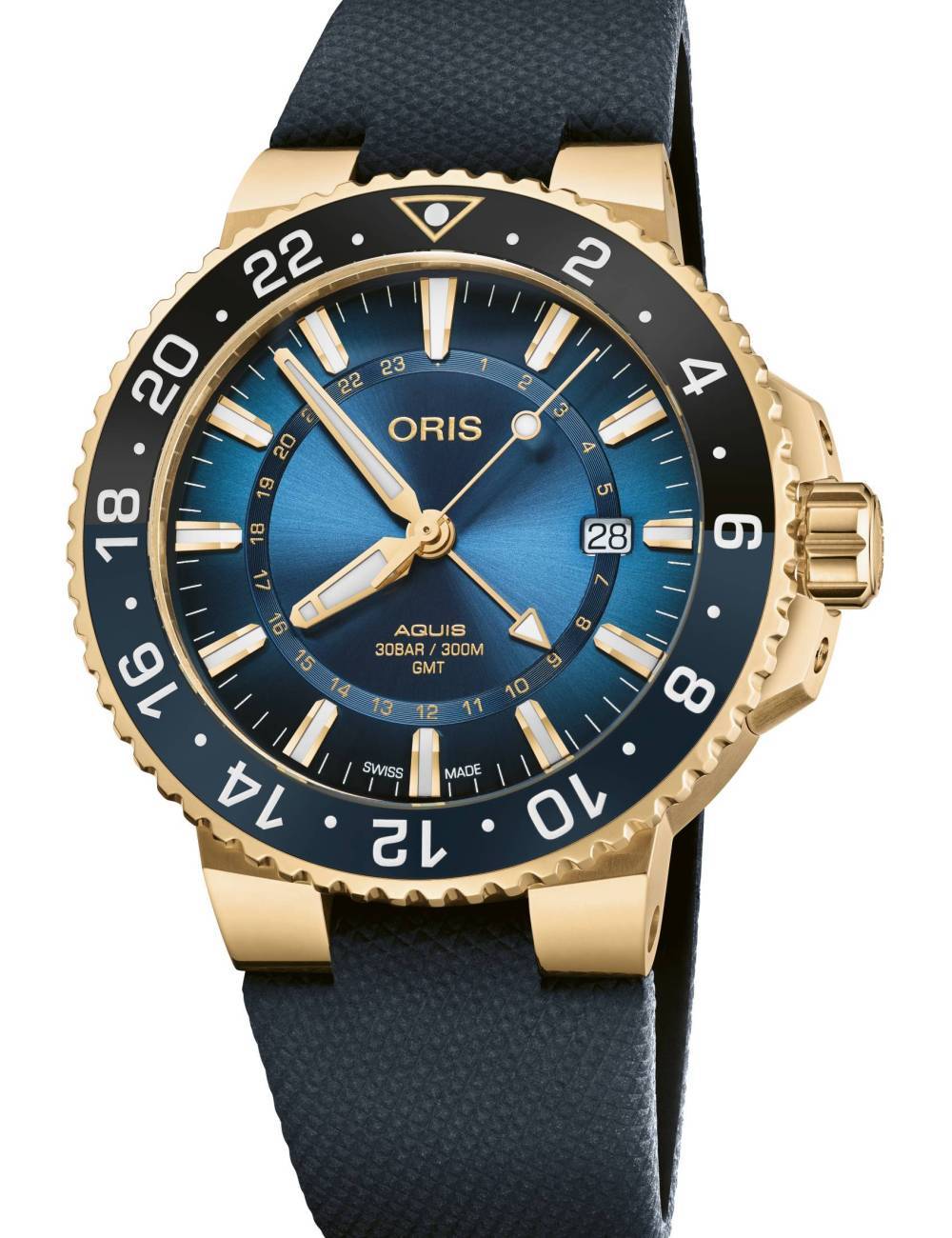 El Oris Carysfort Reef Limited Edition es el primer modelo de Oris Aquis producido en oro macizo. La caja está fundida en oro amarillo de 18 quilates, complementada por un bisel de oro macizo de 18 quilates con un inserto de cerámica negra y azul. El reloj mecánico automático tiene una función GMT y puede mostrar la hora en tres zonas horarias simultáneamente usando la escala de 24 horas grabada con láser en el bisel.