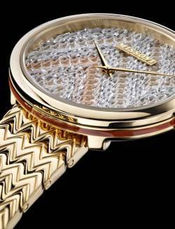 Una tercera versión, perfecta para la Navidad, viene con una preciosa esfera adornada con un tejido lamé de punto en zigzag, sello distintivo del estilo Missoni. El set de regalo se ofrece con una pulsera de metal intercambiable o una correa de lúrex.