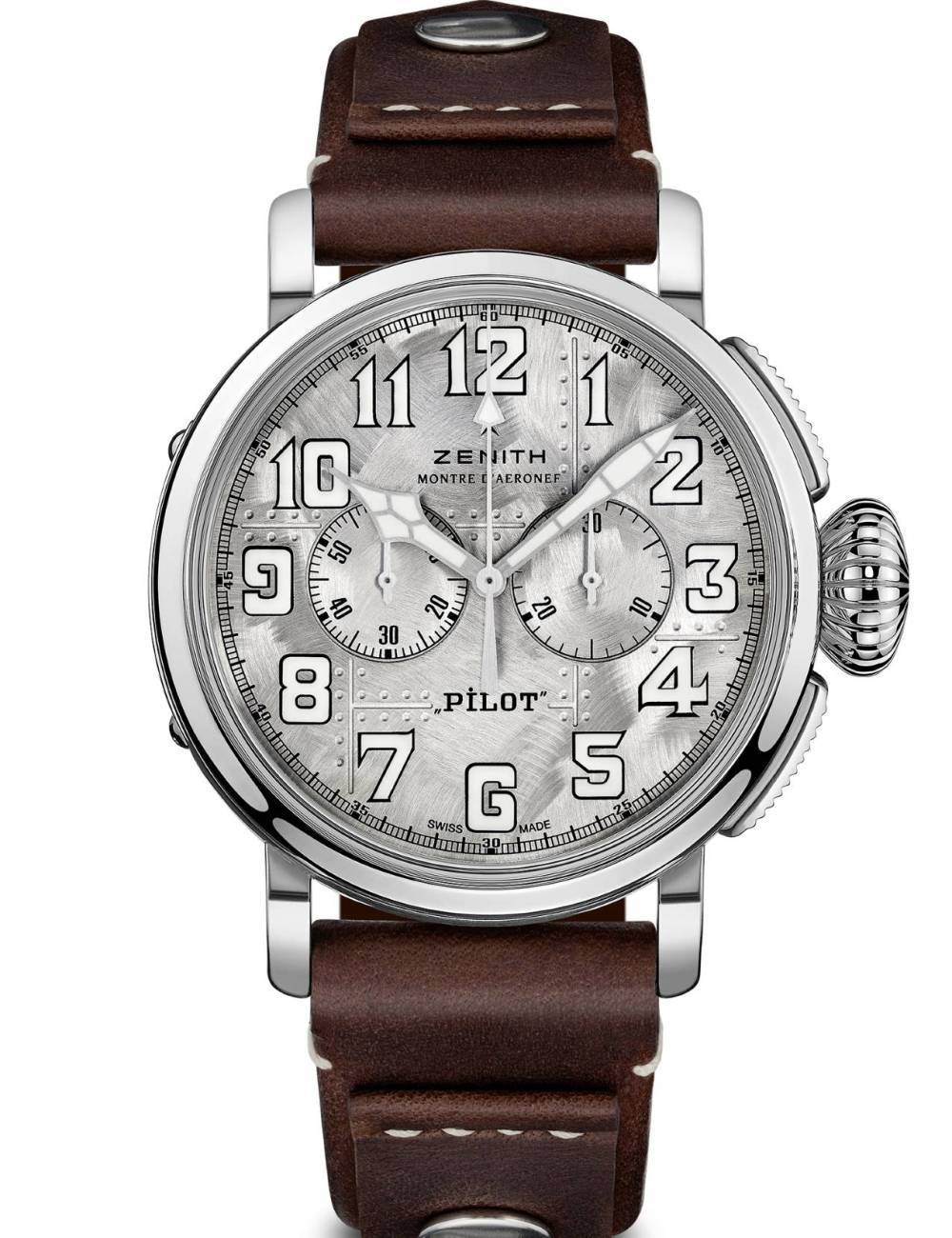 Revisando su icónica e histórica estética Pilot mientras se inspira en el diseño de aviones antiguos, Zenith presenta el Pilot Type 20 Chronograph Silver, un cronógrafo de temática aeronáutica fascinante y ricamente detallado elaborado en plata de ley preciosa - una novedad para un cronógrafo Zenith Pilot.