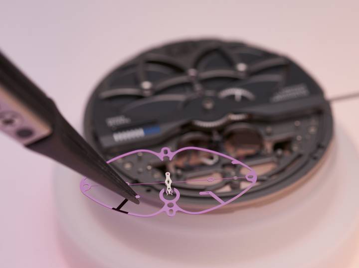 El Neo Constant Escapement es una evolución de este modelo anterior, incorporando varias tecnologías nuevas. De hecho, el 30% de las patentes utilizadas en este último modelo, 13 en total, son nuevas. El nuevo movimiento presenta menos componentes que el modelo de 2013 (266 frente a las 280 piezas anteriores), un claro ejemplo de optimización sobre complejidad. Este cronómetro con certificación COSC aprovecha las propiedades elásticas y biestables del silicio. La hoja, que es de 6 a 10 veces más delgada que un cabello humano, es el componente central para brindar fuerza constante al movimiento.