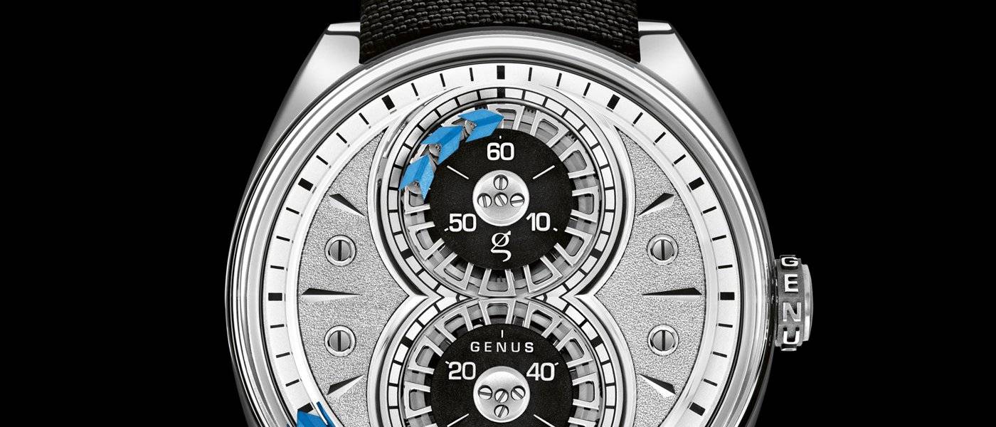Como resultado de cinco años de investigación y desarrollo tanto en ingeniería como en diseño, este reloj elegante y contemporáneo presenta una reinterpretación del sistema patentado de lectura del tiempo de Genus. Los «géneros» flotantes, los elementos indicadores del tiempo característicos del movimiento, destacan a través de dos aberturas esféricas. Estos elementos, en azul metálico, se mueven como tres pequeñas flechas estilo origami en gravedad cero, moviéndose de una órbita a otra con una fluidez fascinante.