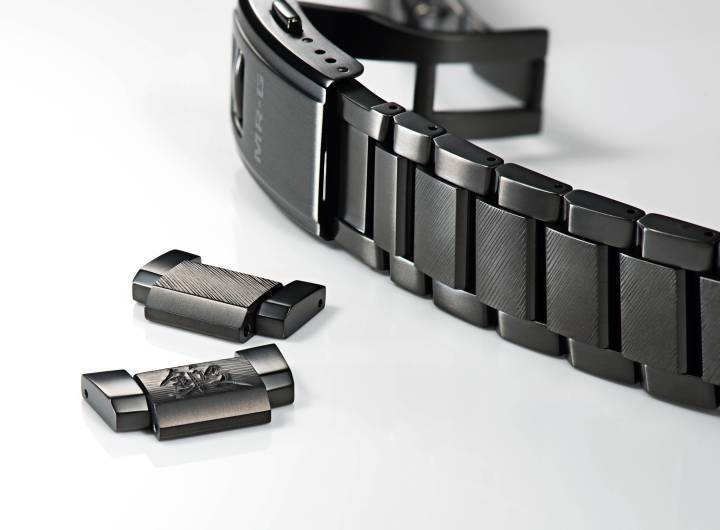 Mediante la utilización de materiales altamente funcionales, como el carbono en el bisel y la banda y el titanio para los pulsadores y las tuberías de los pulsadores, la estructura del reloj se hace más fuerte, más liviana y más resistente a la corrosión.