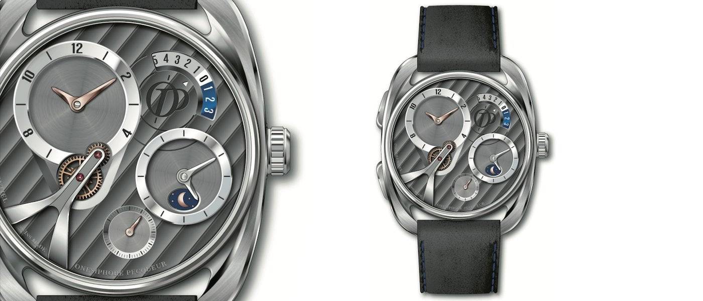 Los diseñadores han maximizado la interacción de los efectos de luz en la esfera, incorporando una variedad de acabados que incluyen rayas de Ginebra (una señal visual prominente), arenado y pulido de diamantes. Expertos artesanos completan el efecto con superficies cepilladas, pulidas y satinadas en la caja. La discreta firma de tres partes «Différentiel - Swiss Made - Onésiphore Pecqueur» y el logotipo circular aportan un toque elegante final al reloj.