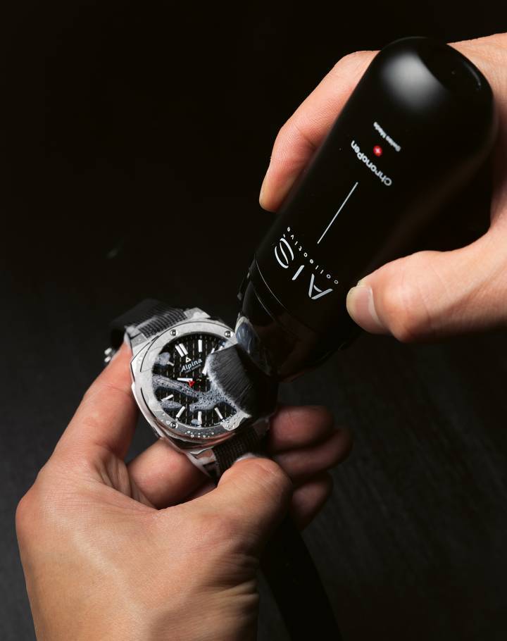 Desde una perspectiva técnica, existen dos enfoques principales para limpiar su reloj: físico y químico. AIS Collective ha desarrollado el ChronoPen, que está diseñado específicamente para limpiar su reloj de manera suave pero a fondo, sin importar el metal del que esté hecho. También es una gran herramienta para limpiar la pulsera de metal, la correa de caucho y el fondo de la caja. El cepillo del ChronoPen viene con cerdas extra suaves y extra largas para que pueda llegar a todos los rincones y grietas y realmente eliminar la suciedad entre los eslabones de la pulsera de su reloj.