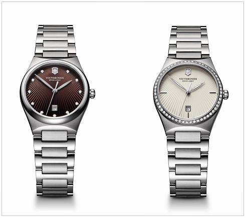 Victorinox Swiss Army ha dedicado gran atención a los detalles en el diseño de esta nueva propuesta femenina. Los colores naturales de la esfera –beige claro, gris carbón o un suave marrón- así como el nácar han sido elegidos para contrastar con el reluciente acero, que está finamente cepillado y pulido. La gama de colores apagados aumenta la sofisticación del reloj.