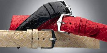 La Pythea edición limitada es una correa de piel de becerro con grabado de pitón de escamas juntas y un acabado patentado y está disponible en una gama de colores de moda. Estas correas se presentarán junto con los nuevos colores "trench coat2 para las correas de goma de la marca, así como sus correas de cuero artesanales tradicionales.