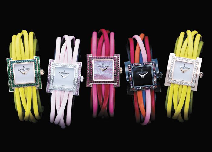 El cuadrado representa la esencia del estilo de la relojería de Fawaz Gruosi, incluso más que el círculo. El reloj Allegra - que tomó forma poco a poco en su imaginación durante diez años antes de que se concretó en los talleres de De Grisogono - es un doble cuadrado o un cuadrado cuadrado.