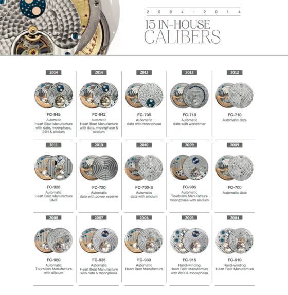 Tras el éxito del lanzamiento del primer calibre Heart Beat Manufacture en 2004, Frédérique Constant ha presentado regularmente una versión adicional a su gama Heart Beat Manufacture. La principal característica se ha mantenido constante, la firma y la apertura patentada, perfectamente centrada en la posición de las 6 en punto.