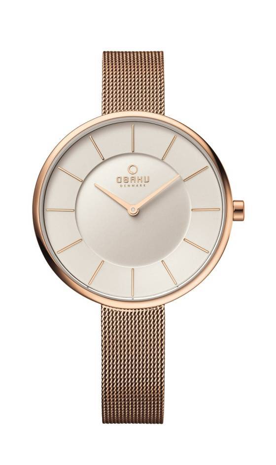 Liderando la línea está el nuevo reloj de la firma de la colección para damas, el reloj Obaku V185. Este nuevo reloj viene en una caja de 38 mm con una correa de malla de 12 mm, creando un hermoso y femenino contraste entre la apariencia y la sensación del reloj. Christian Mikkelsen se desempeñó como Jefe de Diseño para el reloj, lo que garantiza la atención a los más mínimos detalles: