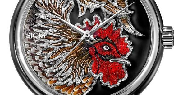 Gracias a su experiencia, Sicis produce algunos de los relojes artísticos más impresionantes que hay hoy en día, centrándose en una técnica de micro-mosaico. El reloj que nos llamó la atención fue el red Rooster, que se inspira en una de las más famosas pinturas de artista Japonés Ito Jakuchu, acertadamente titulado ’Roosters’.