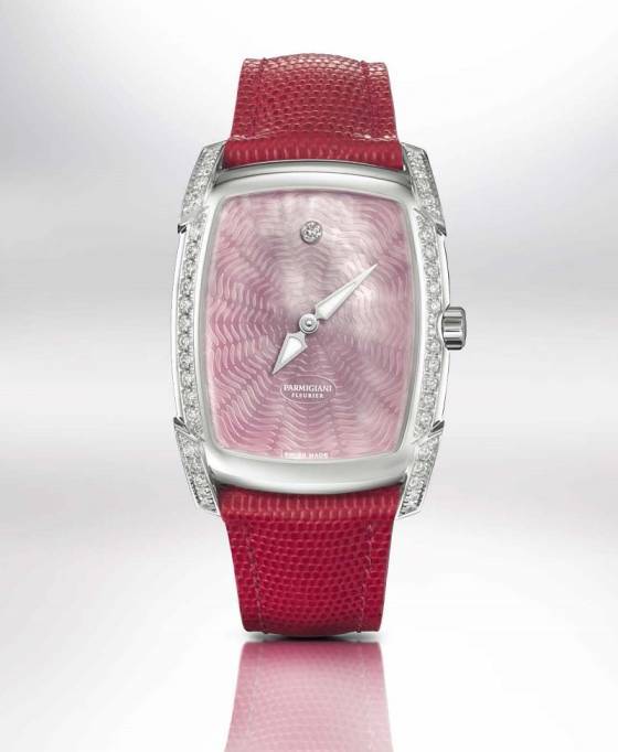 Las esferas de ambos modelos están decorados con nácar, una opción común en relojes femeninos similares. Esta esfera específica, sin embargo, ha sido grabado para dar un efecto esmaltado, un acabado que recuerda más a una pieza de tela. La esfera está disponible en cuatro colores, incluyendo mandarina, blanco, lila y Tahití. Cada uno se empareja perfectamente con una correa de cuero fino complementaria o una pulsera de acero.