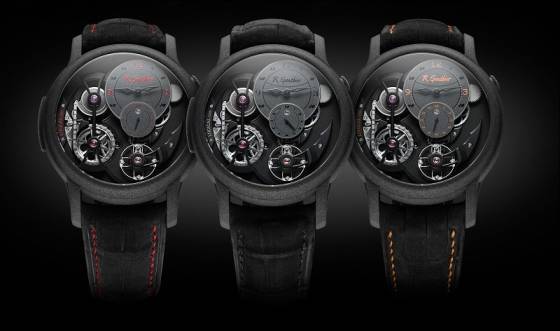 Las esferas se oscurecieron y se les dió un acabado mate. La esfera de bronce del Prestige ha sido esmerilada a mano y, a continuación ennegrecida. Lo mismo que para el Logical One, que ha convertido a sus sub-esferas de esmalte habituales de un negro brillante en un gris de textura rugosa. Las horas, minutos y segundos son también de color negro mate, y el logotipo de la marca es lleno de actitud también.