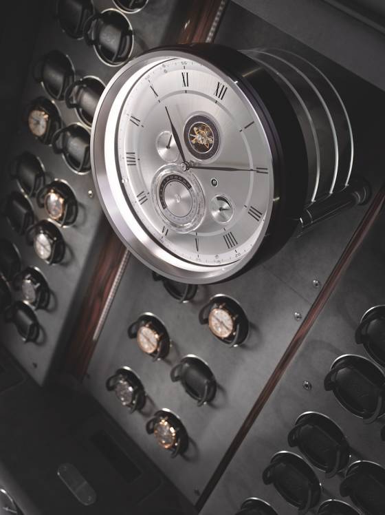 Además de eso, tiene un motor de tiempo 46, un cronometrador fino con función de tiempo dual completado con un escape tourbillon. Y si eso no fuera suficiente, el Solitarie Vision también cuenta con un humidor, un módulo de barra y un sistema Hi-Fi integrado.