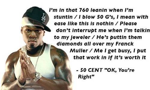 I’m in that 760 leanin when I’m stuntin - I blow 50 G’s, I mean with ease like this is nothin - Please don’t interrupt me when I’m talkin to my jeweler - He’s (...)