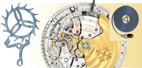 Aún siendo un material relativamente recién llegado a la relojería, no por ello deja de demostrar día a día su potencial de utilización. Apareció bajo los focos en 2005 de la mano de Patek Philippe en la forma de la rueda de escape monocristalina, desarrollada en común con varios centros de investigación entre los que se contaba la Escuela Politécnica Federal de Lausana, el Instituto de Microtécnica de la universidad de Neuchâtel, el Centro Suizo de Electrónica y de Microtécnica y el Laboratorio COMLAB. Se eligió inicialmente este material extremadamente duro (1100 Vickers contra los 700 del acero), resistente a la corrosión, antimagnético, ligero y de baja densidad (2,33 g/cc frente a los 8 g/cc del acero) por sus propiedades tribológicas, siendo uno de los principales objetivos de la relojería mecánica la eliminación de la necesidad de lubricación. El silicio, por sus propiedades físicas y la superficie ideal que presenta, no precisa lubricante. Y esto se convierte en primordial en una de las piezas más delicadas de un movimiento: el escape.