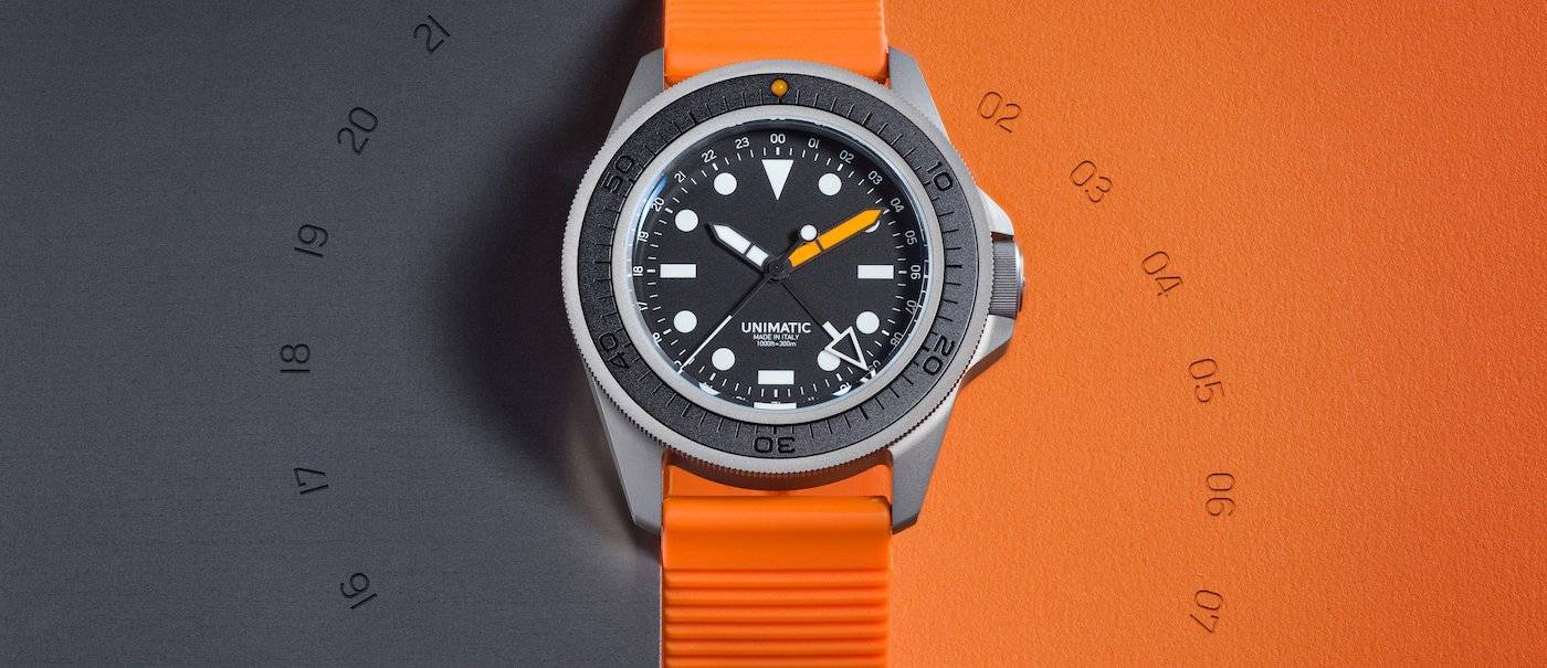 a pieza presenta las características de buceo icónicas del Unimatic Modello Uno: la resistencia al agua de 300 m, la excepcional legibilidad bajo el agua gracias al doble lumen y el bisel de seguridad monodireccional de 120 clics. Caracterizada por un gran minutero claramente naranja para diferenciarla de la manecilla de las horas, esta pieza recuerda a las piezas de archivo de culto de la época de los años 70. Al mismo tiempo, con su ligera caja de titanio arenado, su movimiento suizo GMT ETA 2893-2 y su esfera negra con escala interior blanca de 24 horas, el Modello Uno ref. U1S-T-GMT-ET es el reloj con hora dual definitivo para el uso diario.
