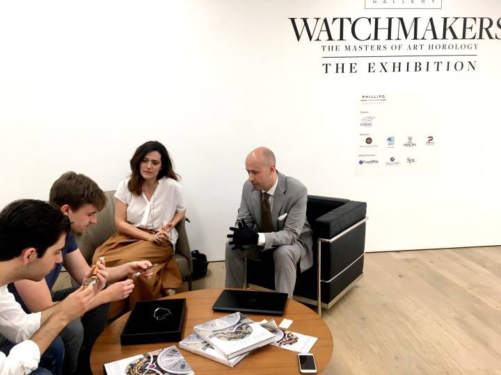 - Phillips acogió la gira mundial de la Independent Watchmakers Exhibition que acabó en Londres. Mis invitados millennials tuvieron el privilegio de ver piezas maestras con el propietario de la exposición, Mr Claudio Proietti de Maxima Gallery.