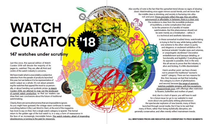 ¡La increíble variedad exhibida muestra que la cultura del reloj nunca ha sido tan fuerte! En Watch Curator 2018, intentamos trazar el paisaje de la producción actual de relojes, para que nuestros lectores puedan sacar sus propias conclusiones sobre el futuro de la relojería tradicional.