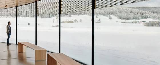 Una suave pendiente le lleva paulatinamente a través de la espiral, cuyo curso fluido está delimitado por generosas ventanas curvas que revelan todo el espacio al tiempo que guían el camino a través de esta estructura luminosa y transparente.