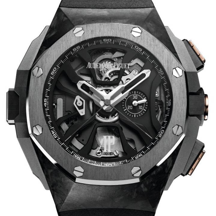 - El Royal Oak Concept Laptimer Michael Schumacher es el primer cronógrafo mecánico del mundo con un sistema de cronometraje de vueltas consecutivas alternas con función flyback, diseñado y diseñado específicamente para medir tiempos de vuelta continuos en el circuito de carreras de motor. El pulsador a las nueve en punto detiene una de las dos manecillas del cronógrafo y simultáneamente pone la otra a cero y la reinicia. Así, el cronometraje de la siguiente vuelta comienza incluso antes de que se registre el tiempo anterior, y el reloj permite prescindir del sistema de dos o más cronógrafos, simplificando el proceso mediante el uso de un único cronógrafo de pulsera. El reloj también puede retener un tiempo de referencia específico: simplemente detenga una aguja con el pulsador a las nueve en punto y luego use el pulsador flyback a las cuatro en punto para poner la otra aguja a cero y empezar a cronometrar una nueva vuelta. . Finalmente, el reloj se puede utilizar como un cronógrafo flyback clásico operando las dos manecillas simultáneamente.