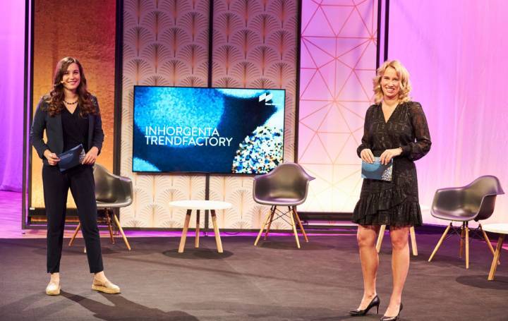 - INHORGENTA TRENDFACTORY #ReInspire con (l. t. r.) la presentadora Hanna Klose y Stefanie Mändlein, la Directora de INHORGENTA