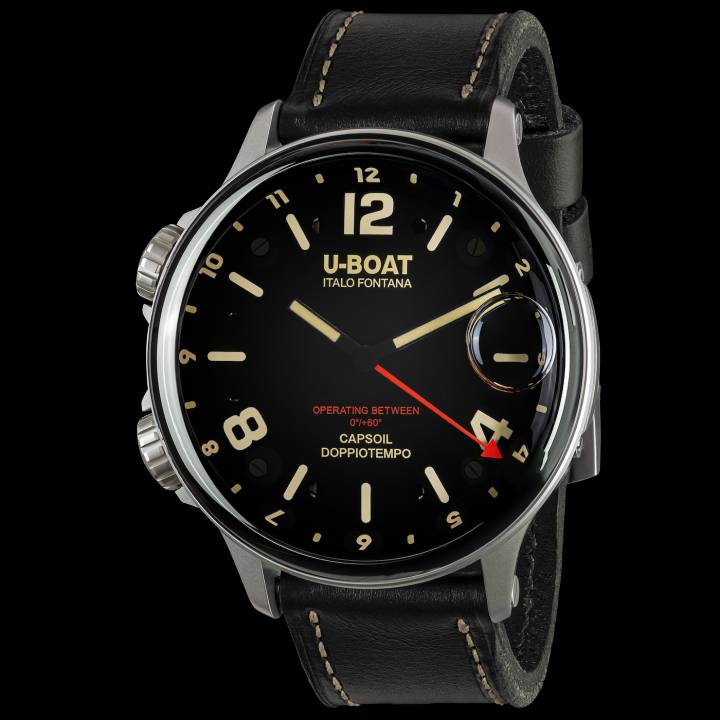 Hoy, el fundador de U-Boat presenta el Capsoil Doppiotempo, una extraordinaria evolución del reciente modelo de 45 mm, ahora disponible en una versión extragrande de 55 mm.