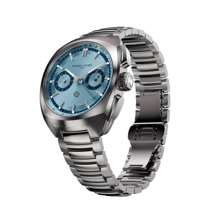 La mirada se dirige naturalmente a la magnífica esfera con efecto rayos de sol, disponible en tres variantes de color: azul, azul hielo y negro. Fabricada según los más altos estándares, requiere más de 100 pasos de producción meticulosos. La impresión de profundidad crea un contraste sorprendente, realzado por dos subesferas en relieve, un escaparate de un nivel de acabado excepcional. Con los contadores bicompax ubicados a las 9 y las 3 en punto para lecturas precisas de minutos y segundos, el Chief Chronograph encarna perfectamente el compromiso de Favre Leuba con la innovación y la calidad. Con una escala taquimétrica en el reborde interior para medir la velocidad, algo imprescindible en los cronógrafos deportivos, esta esfera se destaca aún más con detalles refinados. Un reloj de arena estilizado en 3D, el emblema de Favre Leuba, a las 6 en punto agrega un toque de sofisticación.