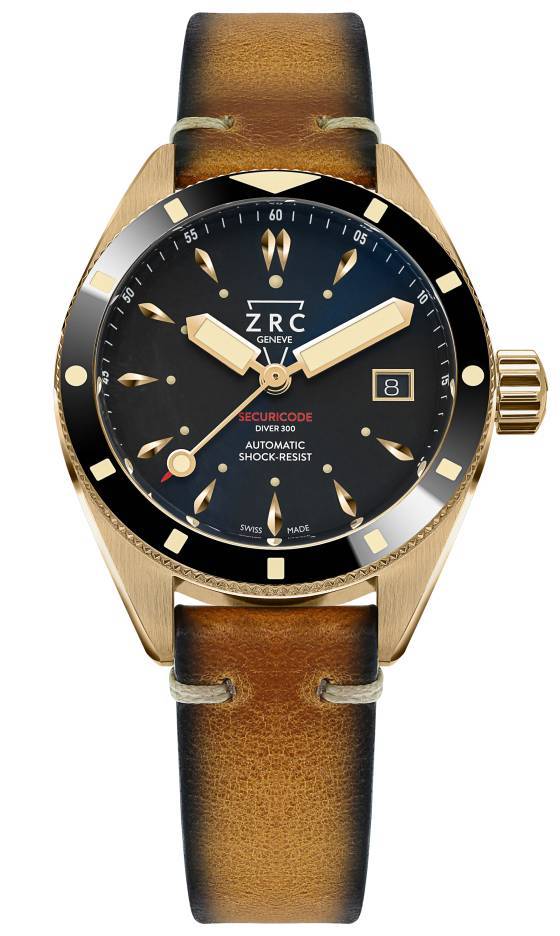ZRC celebra su nueva colección con una edición limitada que presenta una caja de bronce forjado. El reloj retoma las características del Securicode Diver 300 Steel/Ceramic con fecha. Las agujas y los índices están acabados en Super-LumiNova cáscara de huevo a juego con el color de la caja. Para un look perfecto, esta edición se lleva con una correa de cuero vintage.