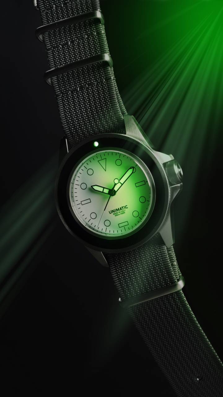 Cuando cae la noche, el U1-FL ofrece precisión luminosa y una visibilidad excepcional para la noche. El primer modelo full lume de Unimatic está diseñado para aquellos que quieren destacarse después del anochecer. Con una esfera completamente recubierta de Super-LumiNova C1, el U1-FL brinda una visibilidad excepcional en condiciones de poca luz, iluminando cada detalle para una legibilidad instantánea. Con una esfera minimalista y un bisel estéril, este modelo resalta la simplicidad y el diseño funcional. El U1-FL es perfecto para aquellos que viven para la noche y quieren mostrar su individualidad.