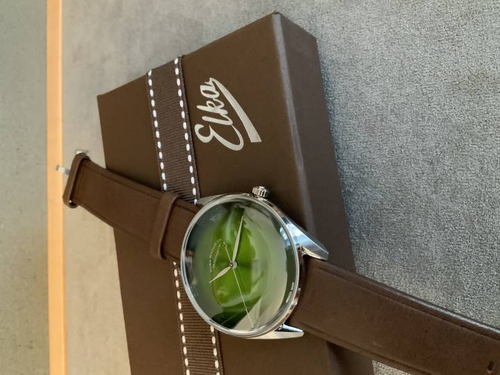 Elka Watch presenta dos relojes producidos en una serie limitada de 25 piezas cada uno. Estas creaciones únicas, inspiradas en los tonos profundos del verde y el burdeos, siguen los pasos de los modelos icónicos de la joven marca. Sus esferas satinadas, con reflejos cambiantes, y sus cristales de zafiro abovedados ofrecen un espectáculo visual fascinante.