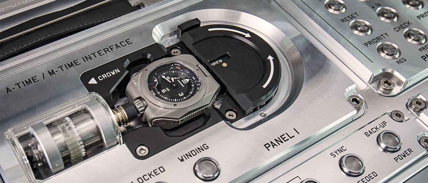 El reloj en sí fue, por supuesto, especialmente diseñado para este proyecto de AMC. Interactúa con el reloj maestro de tres maneras: regulación de la velocidad: la tarea más compleja: sincronización de los minutos y segundos y el bobinado de los dos barriletes (la reserva de energía es de cuatro días).