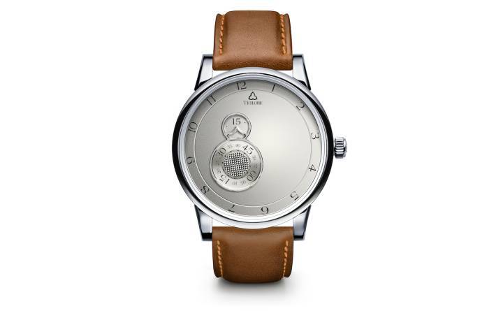 El diseño de esta creación favorece el minimalismo y juega con las percepciones. La elegante esfera granulada es un verdadero desafío técnico, subyacente a la elegancia del reloj. Desafía las formas simétricas y se compone de cuatro partes, tres de las cuales están en rotación permanente.