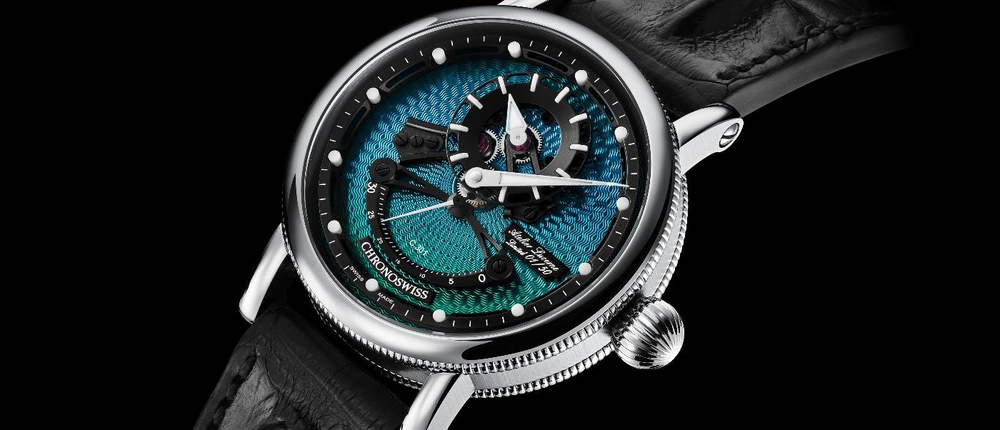 ire el Open Gear ReSec Paraiba en sus manos, y la esfera del reloj con un guilloché hecho a mano cambia mágicamente de un suave azul turquesa y azul petróleo a un verde jungla y un morado oscuro, el resultado de la experimentación incansable en un campo exclusivo de Chronoswiss.