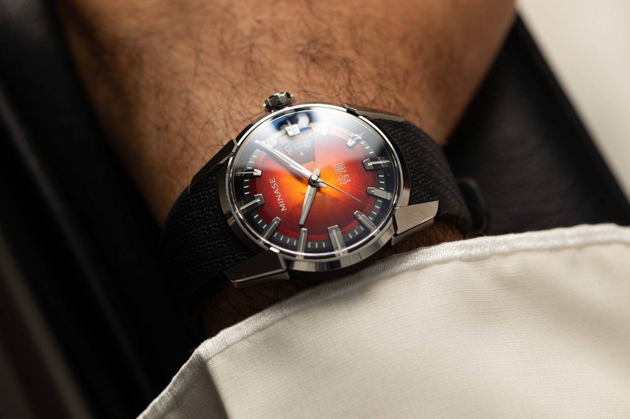 El Divido Blood Orange Edition es un reloj único creado con una gran atención a los detalles y con un color de esfera único. La esfera es una placa fina de cobre martillado acabada con una técnica de laca Japonesa distintiva pintada a mano. Se decidió agregar un toque único de arte Japonés mostrando el “Kanji” de Minase por encima de las 6 en punto.