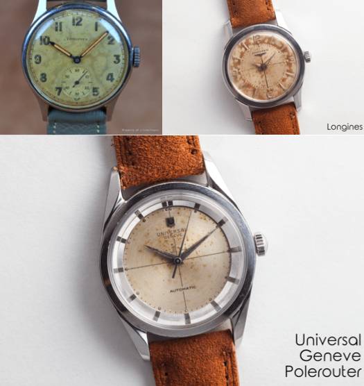 Pero la pátina en realidad puede ser subjetiva. Algunos vendedores usarán la terminología en abundancia para vender relojes podridos a los principiantes que ingresan al mercado. Relojes con putridez y, a veces, hongos en la esfera. No me malinterpreten, cada uno tiene sus propios gustos y límites con respecto a la calidad y la forma de un reloj, pero simplemente no estoy de acuerdo con los tratantes que usan la palabra «pátina» y tienen una prima extrema para un reloj podrido.