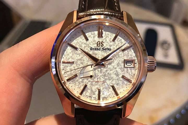 - Uno de los Grand Seiko Spring Drive 44G de edición limitada para el mercado Estadounidense, con la textura «Kabuki Kimono» en la esfera