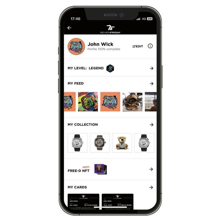 Para los propietarios de relojes SevenFriday, la aplicación les permitió recibir soporte y privilegios. Desde entonces, se transformó en un foro de marca basado en dispositivos móviles, donde los usuarios pueden interactuar entre sí y acceder a eventos de la comunidad. Este año, la aplicación lanzó una experiencia de juego completamente nueva y la funcionalidad adicional de los certificados de propiedad en forma de NFT acuñados en la cadena de bloques. Además del compromiso de la comunidad existente, la aplicación ahora actúa como una billetera digital para productos con chip NFC y tokens de membresía.