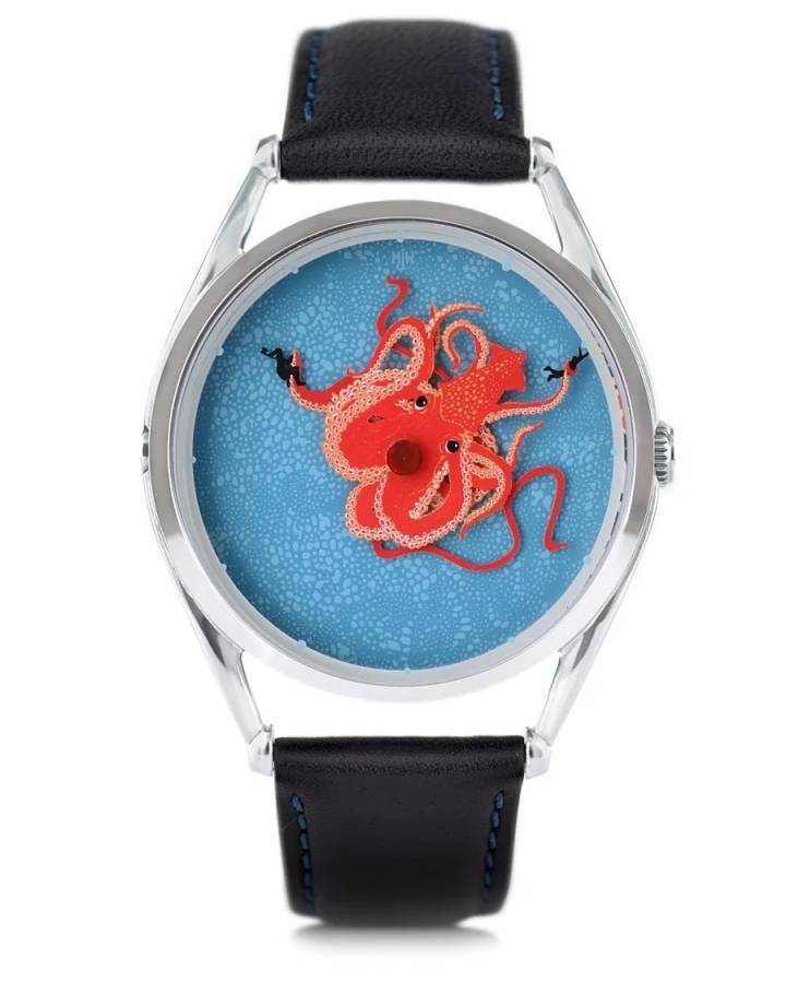 Ahora, a través de una serie de colaboraciones con artistas independientes, Mr Jones Watches ofrece una gama mucho más amplia de diseños, desde morbosos y melancólicos hasta alegres y absurdos. Y cada uno tiene su forma peculiar de dar la hora.