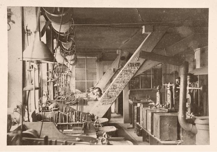 Un reloj de pulsera Vacheron Constantin de 1921 y los talleres de la empresa en 1900.